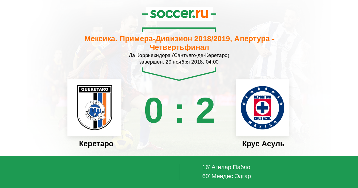 Протокол матча Керетаро против Крус Асуль