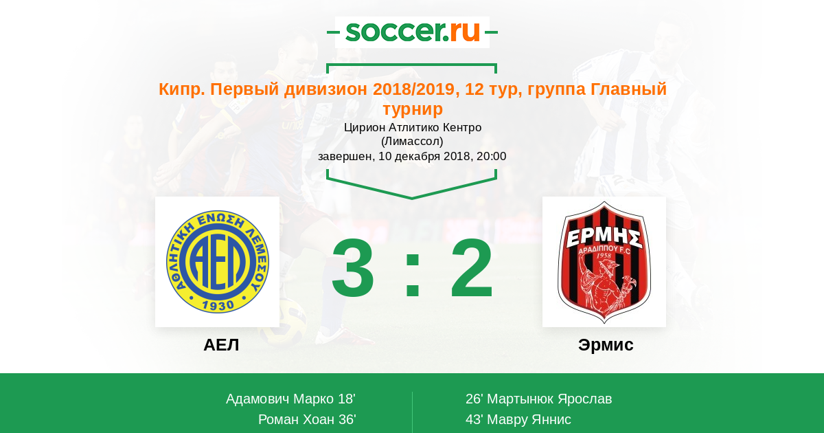 Протокол матча АЕЛ против Эрмис