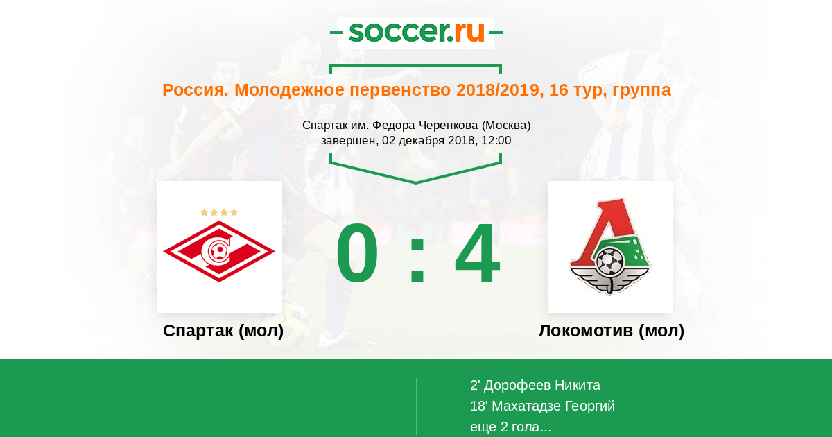 Протокол матча Спартак (мол) против Локомотив (мол)