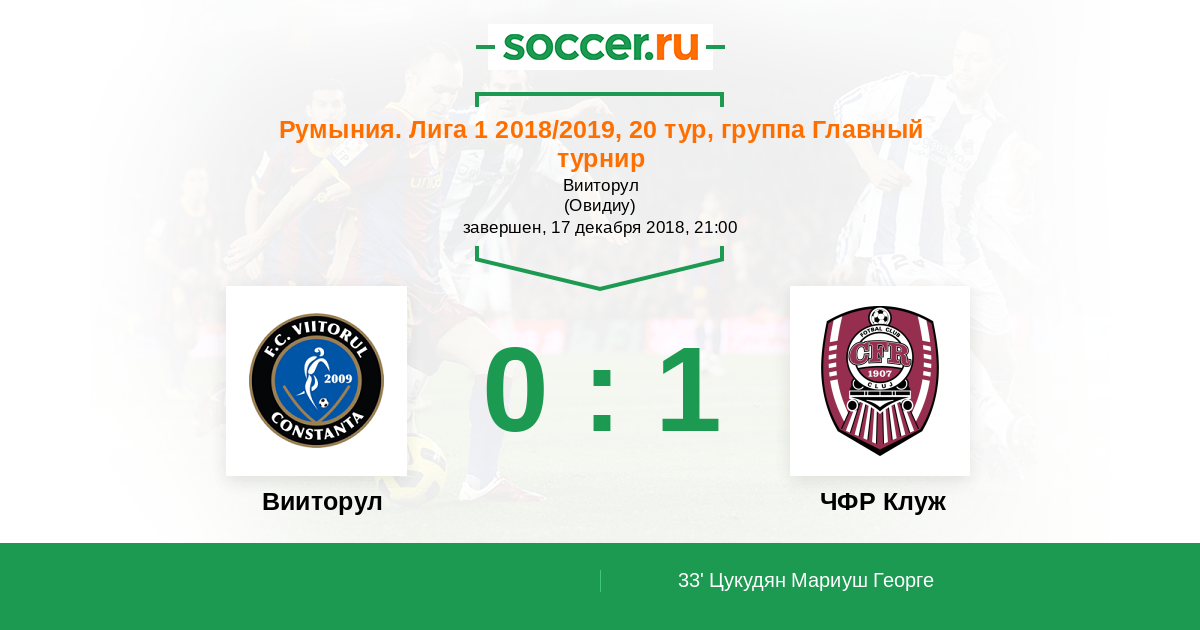 Протокол матча Вииторул против ЧФР Клуж