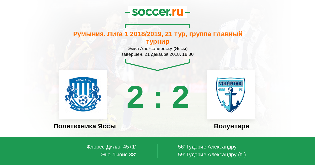 Протокол матча Политехника Яссы против Волунтари