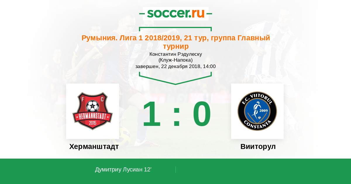 12' (1:0) Думитриу Лусиан (44) (Петреску Петрисор (7))