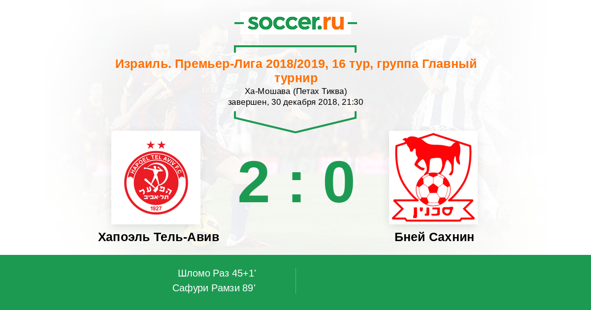 Протокол матча Хапоэль Тель-Авив против Бней Сахнин