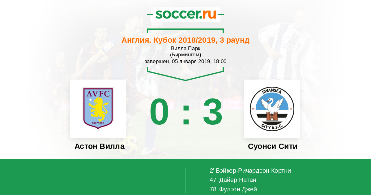 Протокол матча Астон Вилла против Суонси Сити
