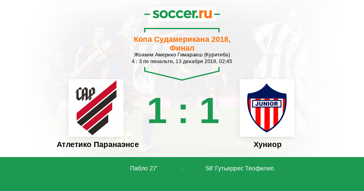 Протокол матча Атлетико Паранаэнсе против Хуниор