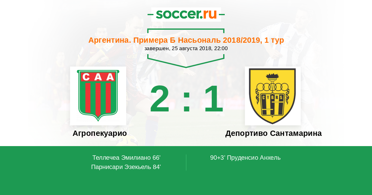 Протокол матча Агропекуарио против Депортиво Сантамарина