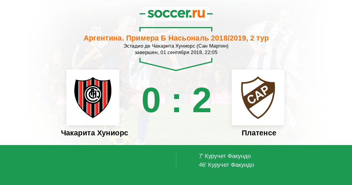 Протокол матча Чакарита Хуниорс против Платенсе