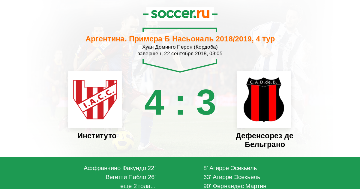 Протокол матча Институто против Дефенсорез де Бельграно