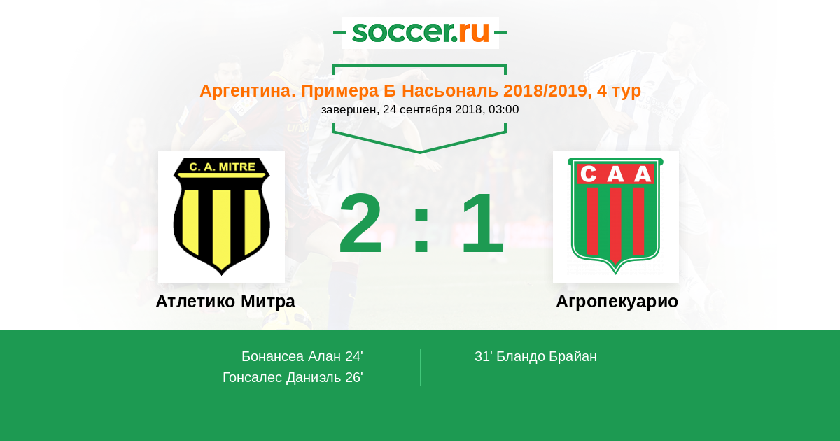 Протокол матча Атлетико Митра против Агропекуарио