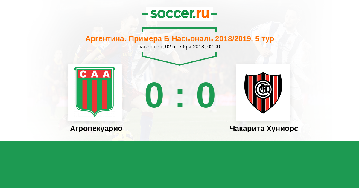 Протокол матча Агропекуарио против Чакарита Хуниорс