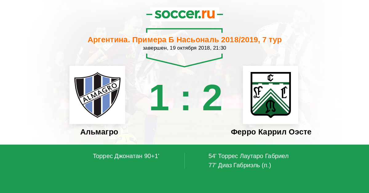 Протокол матча Альмагро против Ферро Каррил Оэсте