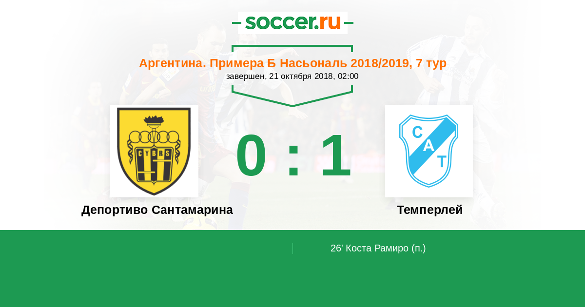 Протокол матча Депортиво Сантамарина против Темперлей