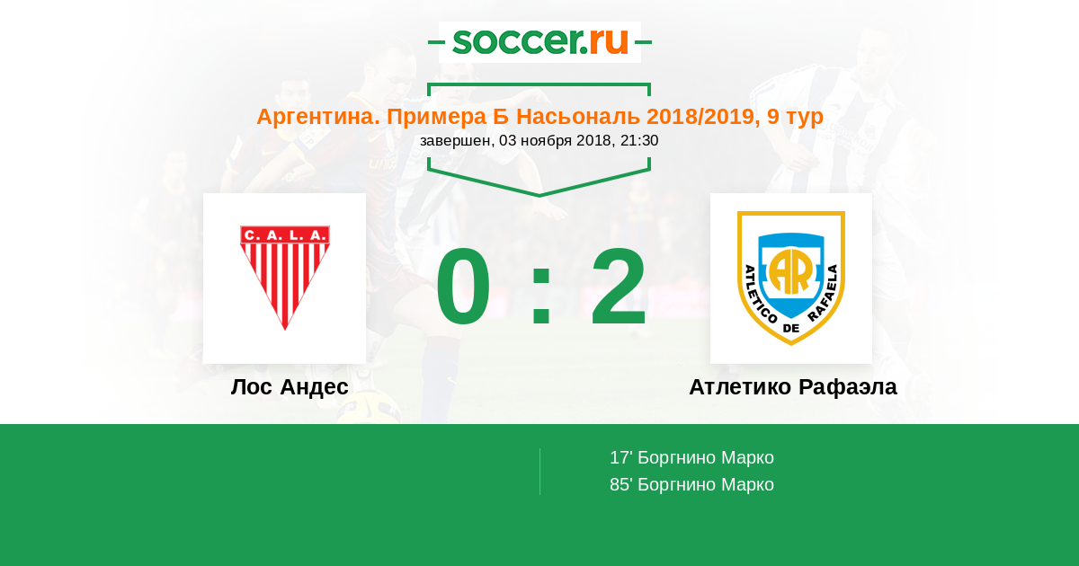 Протокол матча Лос Андес против Атлетико Рафаэла