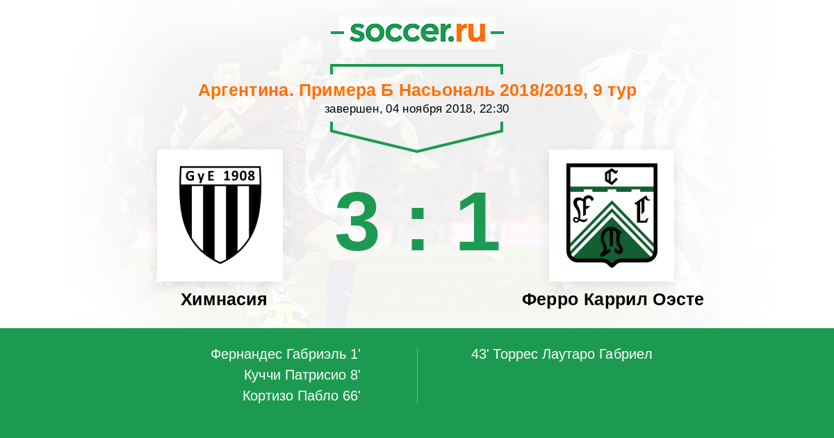 Протокол матча Химнасия против Ферро Каррил Оэсте