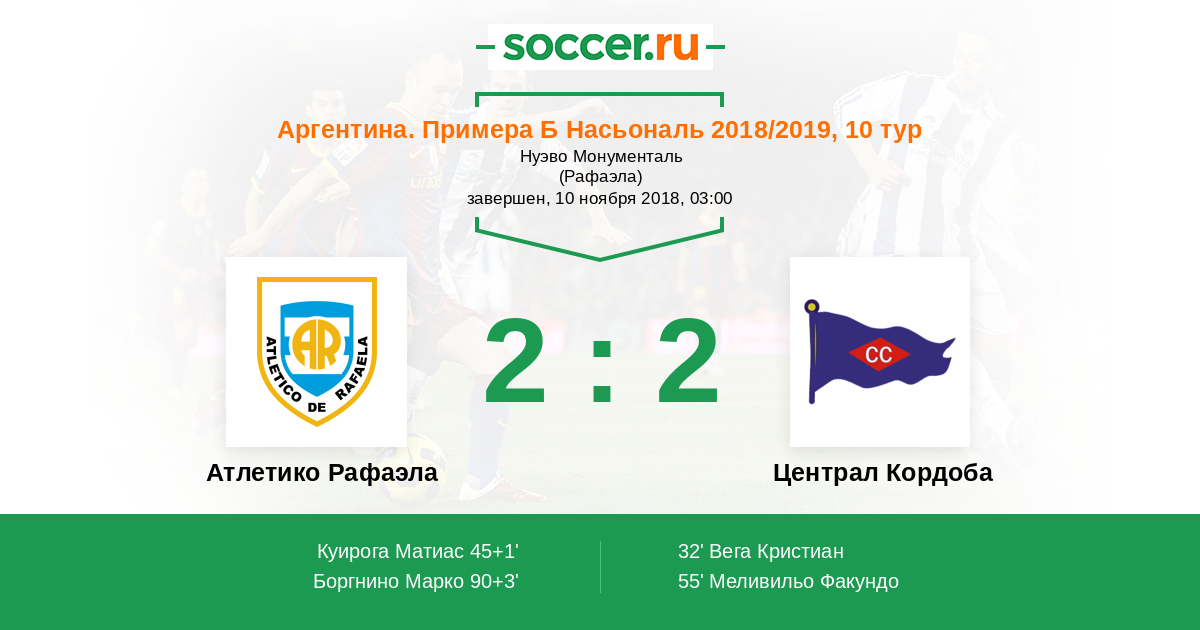 Протокол матча Атлетико Рафаэла против Централ Кордоба