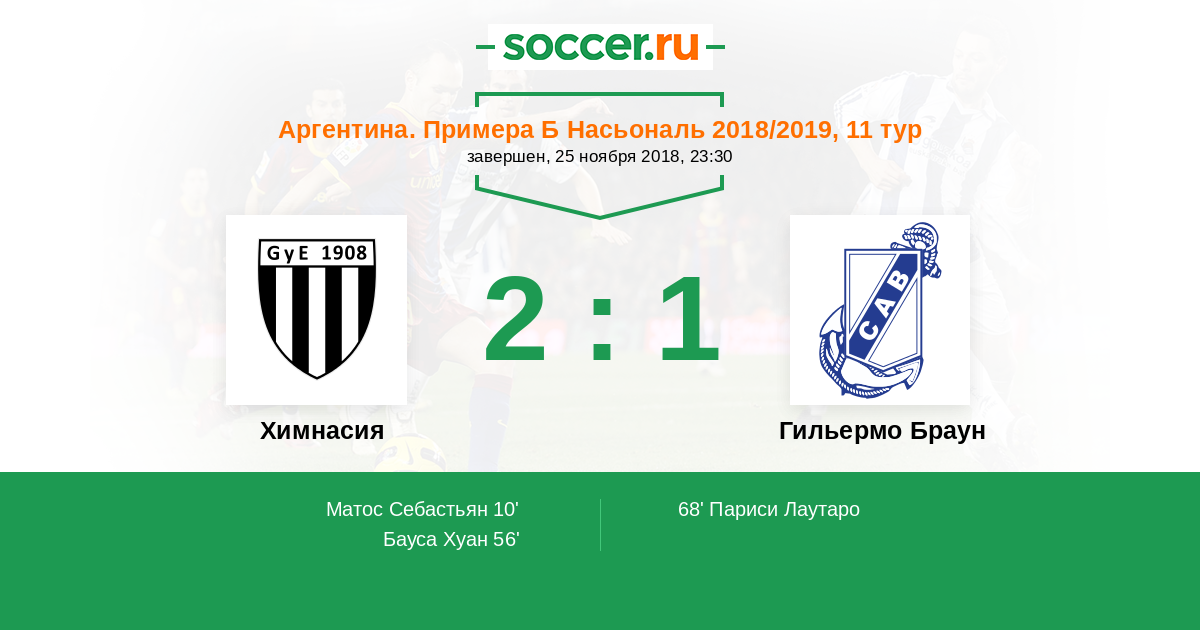Протокол матча Химнасия против Гильермо Браун