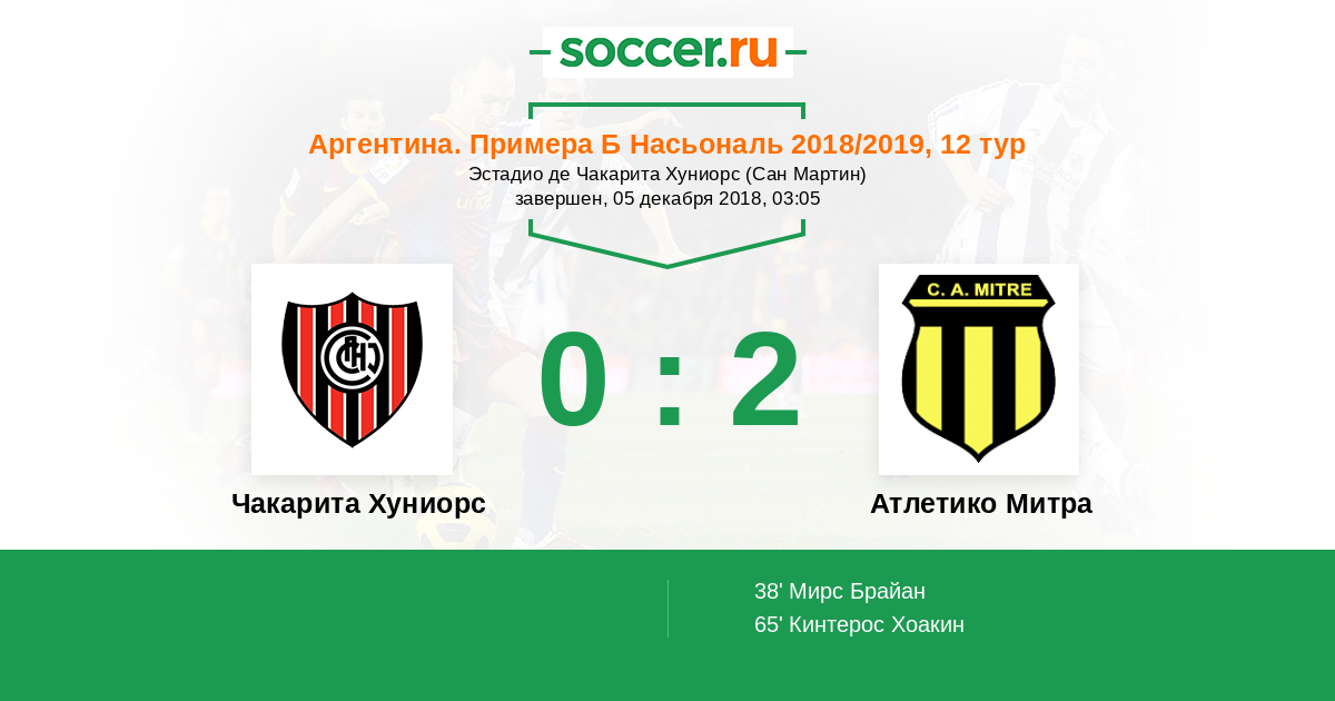 Протокол матча Чакарита Хуниорс против Атлетико Митра