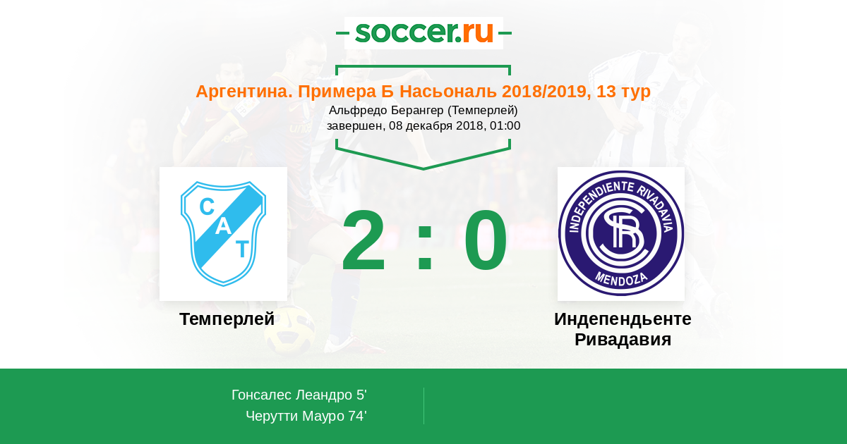 Протокол матча Темперлей против Индепендьенте Ривадавия