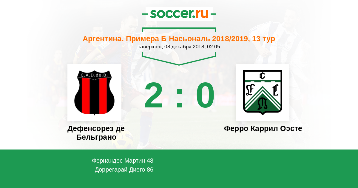 Протокол матча Дефенсорез де Бельграно против Ферро Каррил Оэсте