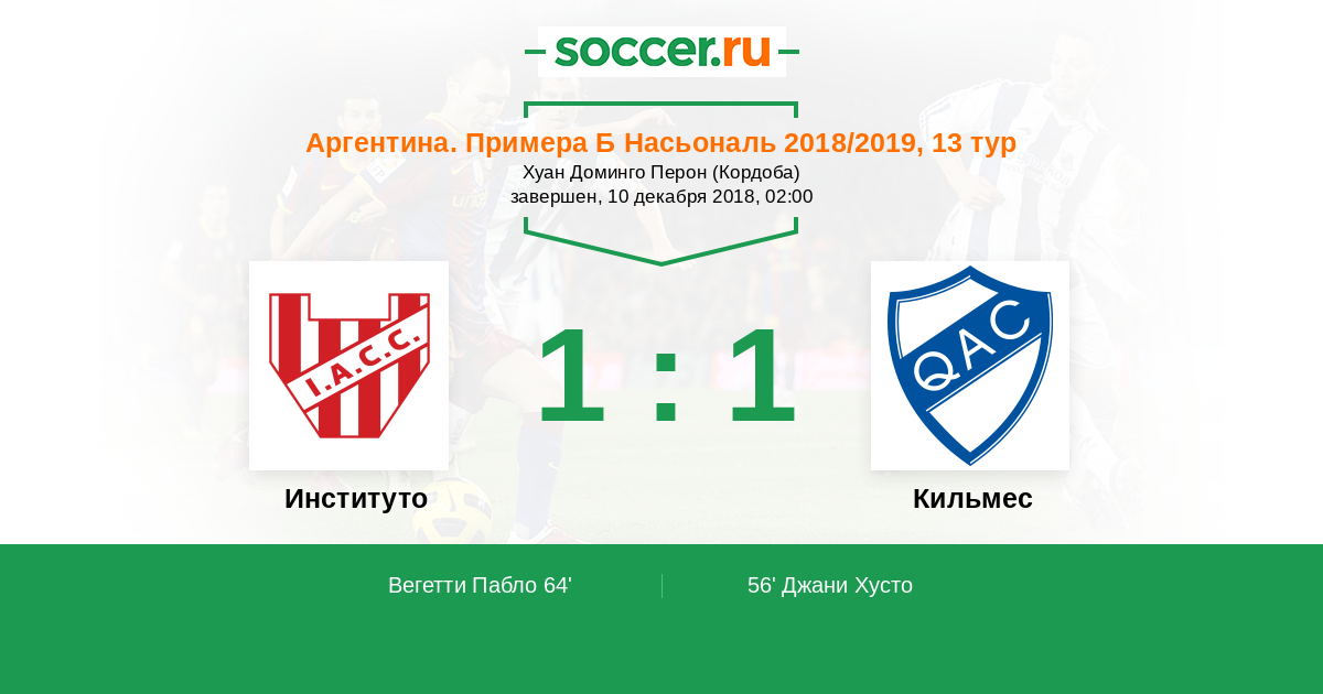 Протокол матча Институто против Кильмес
