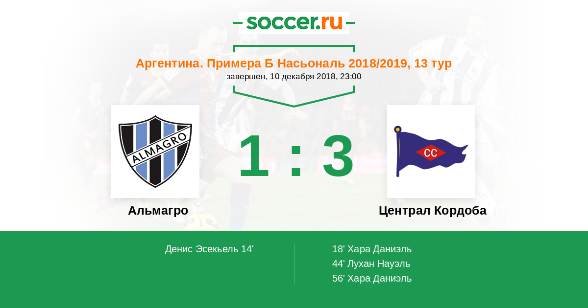 Протокол матча Альмагро против Централ Кордоба