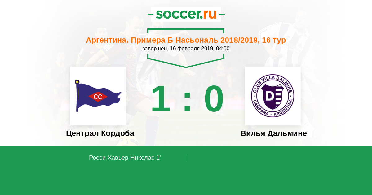 Протокол матча Централ Кордоба против Вилья Дальмине