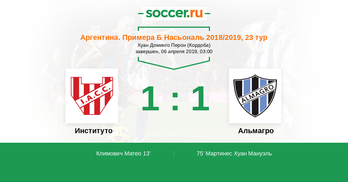 Протокол матча Институто против Альмагро