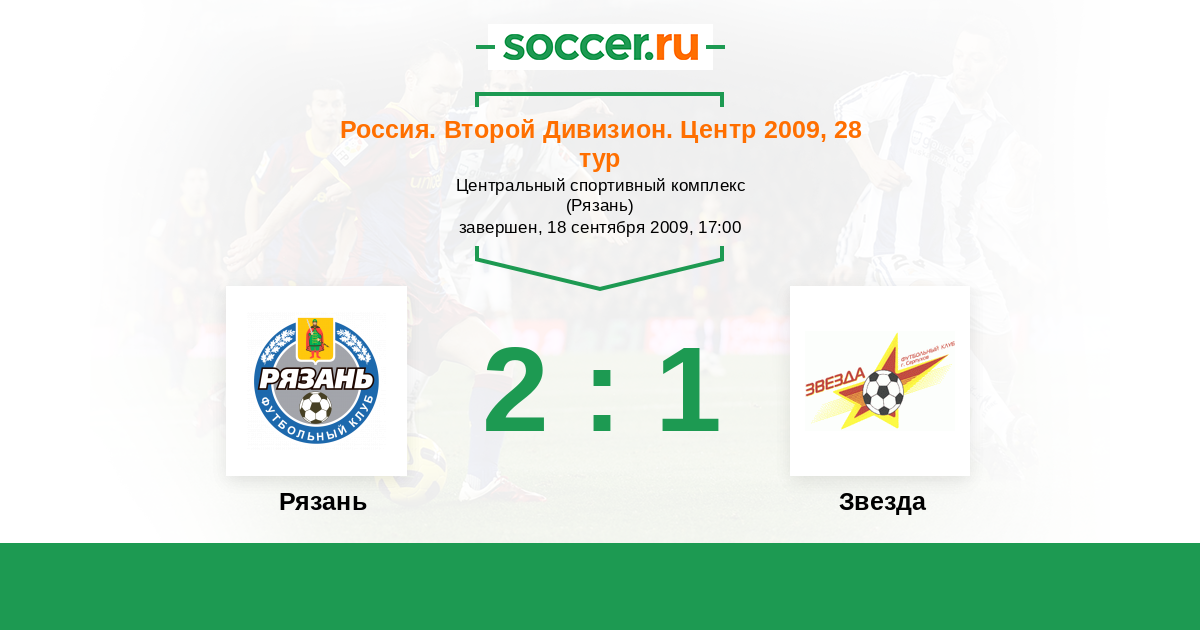 Россия. Вторая лига. Группа 3 18.09.2009 Звезда Рз Логотип футбольный клуб Звезда Рз (Рязань) 2:1 Логотип футбольный клуб Звезда (Серпухов) Звезда