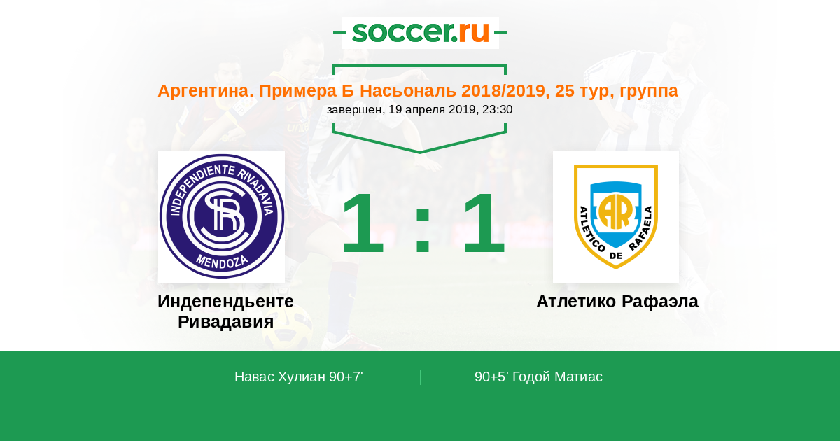 Протокол матча Индепендьенте Ривадавия против Атлетико Рафаэла