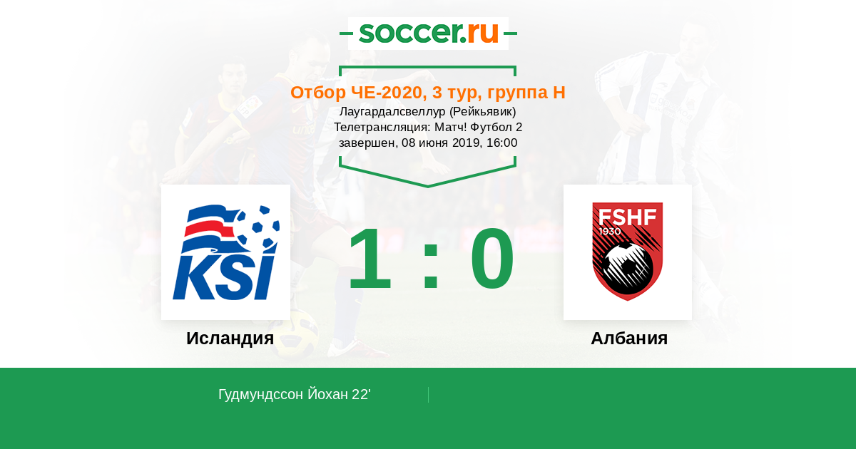 Протокол матча Исландия против Албания