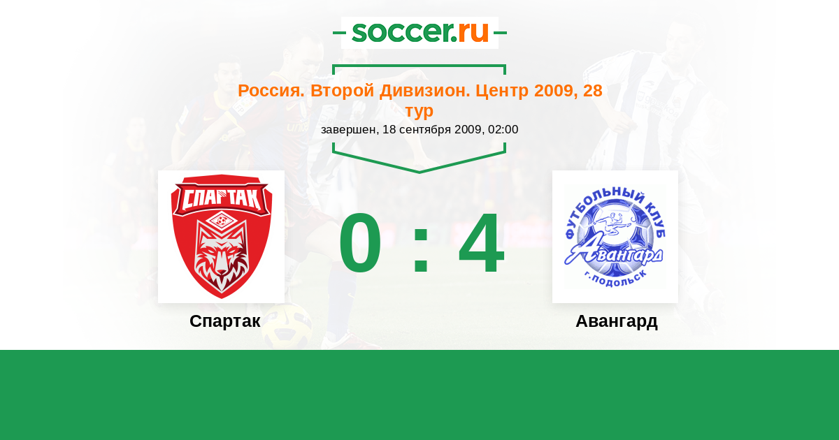 Россия. Вторая лига. Группа 3 18.06.2009 Авангард Логотип футбольный клуб Авангард (Подольск) 2:0 Логотип футбольный клуб Спартак (Тамбов) Спартак