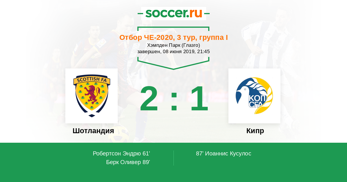 Протокол матча Шотландия против Кипр