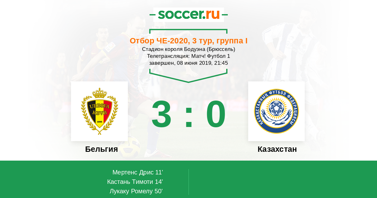 Протокол матча Бельгия против Казахстан