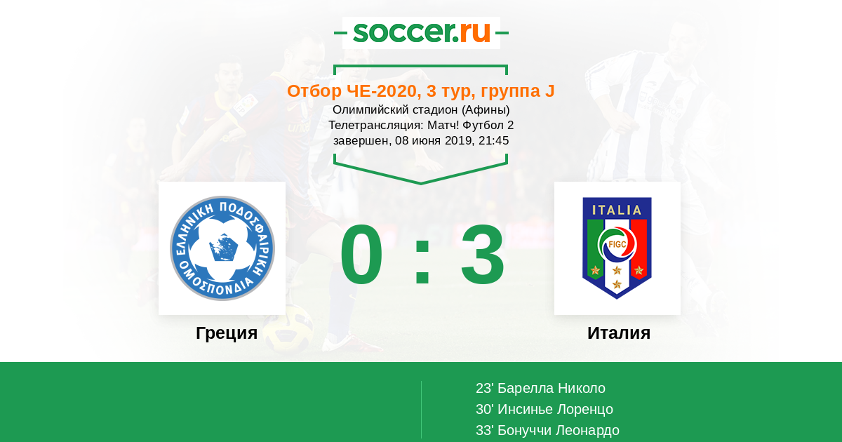 Протокол матча Греция против Италия