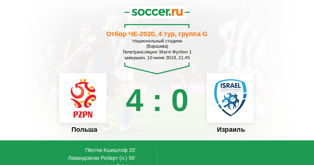 Протокол матча Польша против Израиль