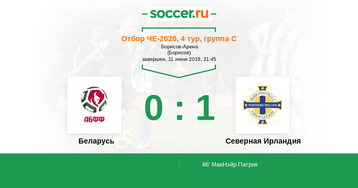 Протокол матча Беларусь против Северная Ирландия
