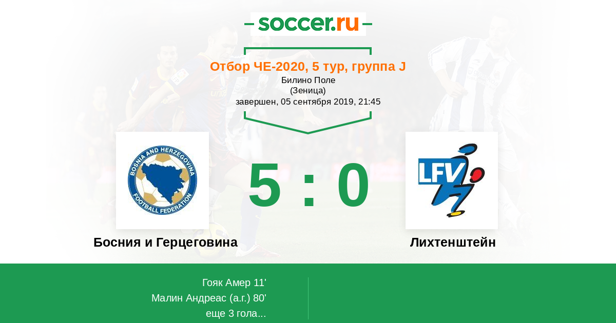 Протокол матча Босния и Герцеговина против Лихтенштейн