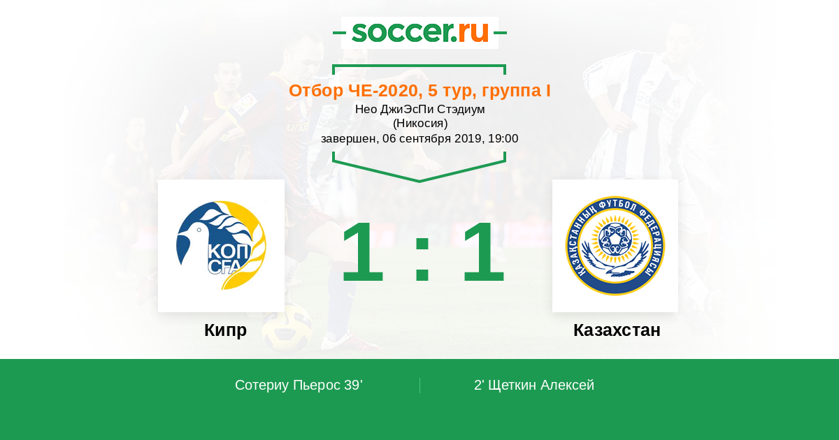 Протокол матча Кипр против Казахстан