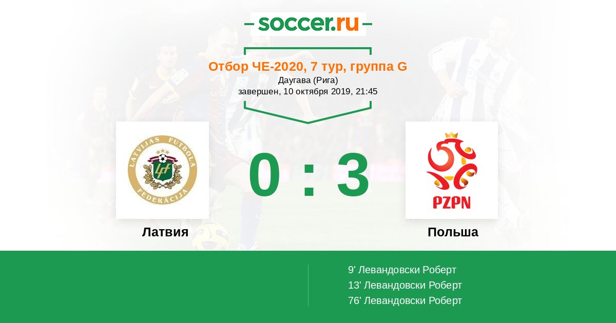 9' (0:1) Левандовски Роберт (9) (Шиманьски Себастьян (19))
