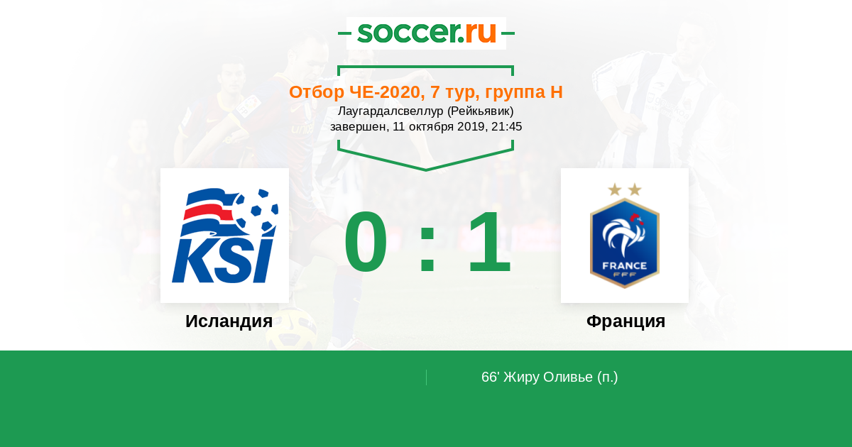 Протокол матча Исландия против Франция