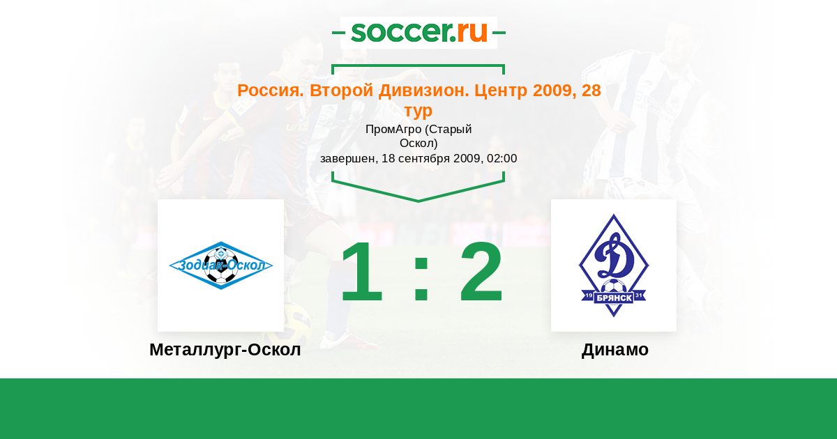 Россия. Вторая лига. Группа 3 18.06.2009 Динамо Брянск Логотип футбольный клуб Динамо Брянск 2:1 Логотип футбольный клуб Металлург-Оскол (Старый Оскол) Металлург-Оскол