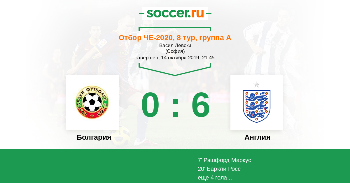 Протокол матча Болгария против Англия