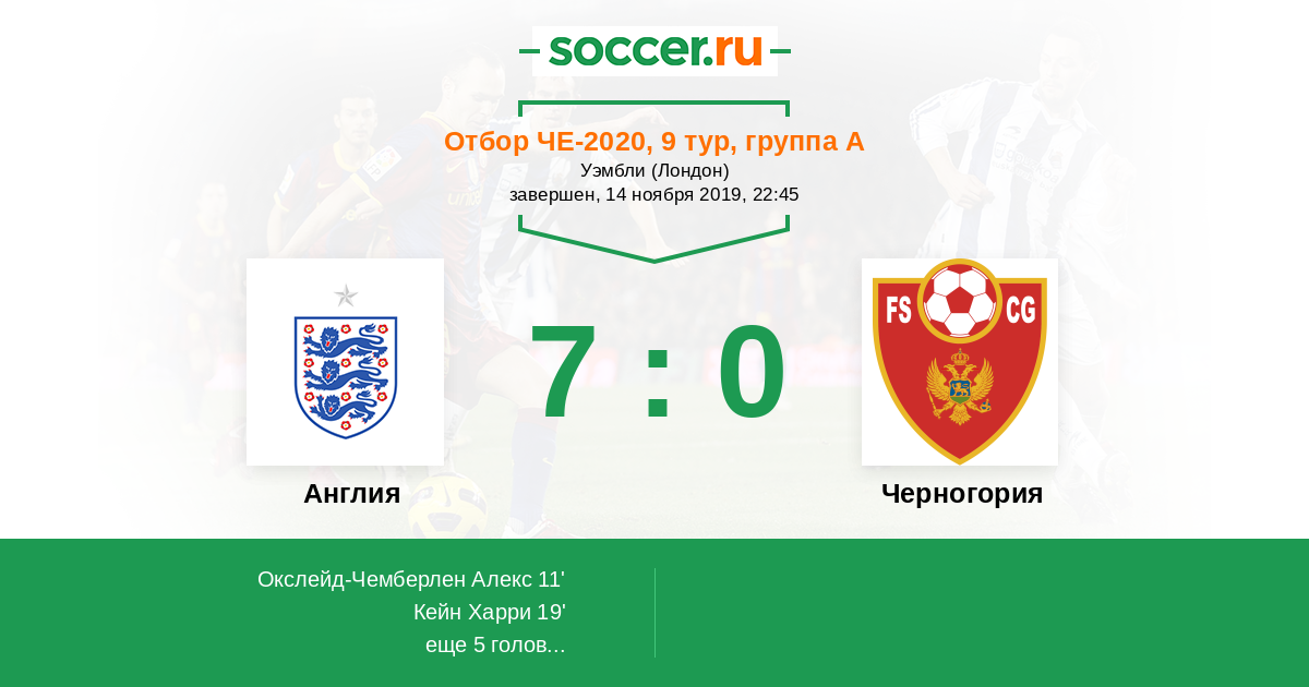 Протокол матча Англия против Черногория