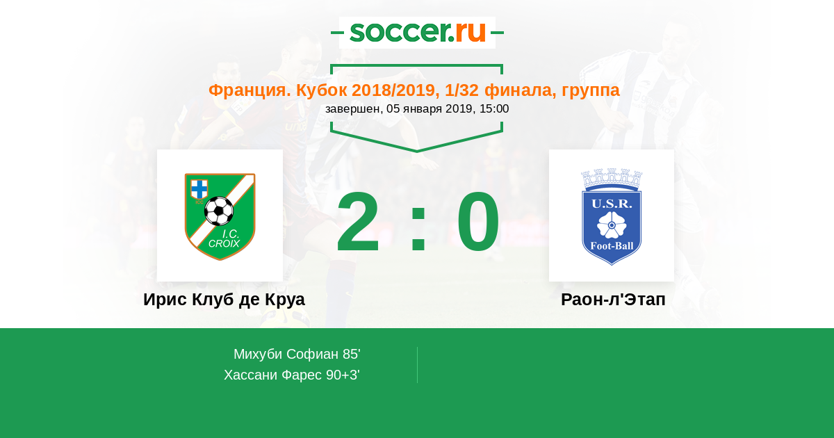 Протокол матча Ирис Клуб де Круа против Раон-л'Этап