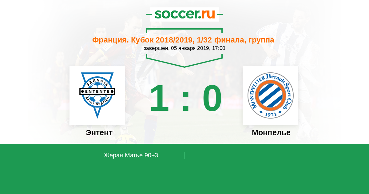 Протокол матча Энтент против Монпелье