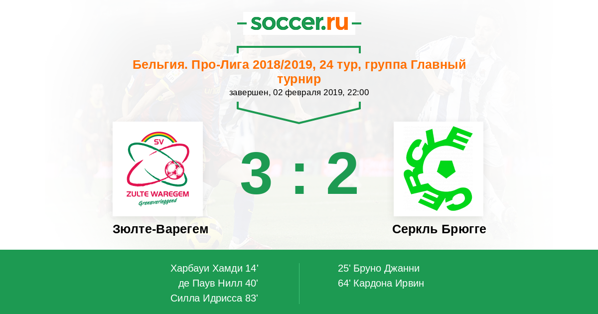 Протокол матча Зюлте-Варегем против Серкль Брюгге