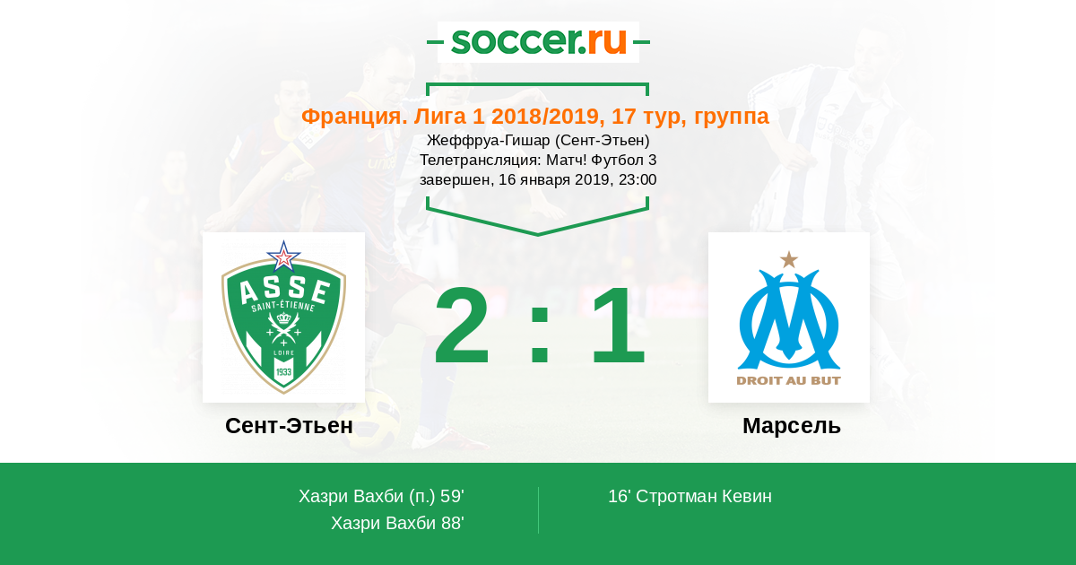 Протокол матча Сент-Этьен против Марсель