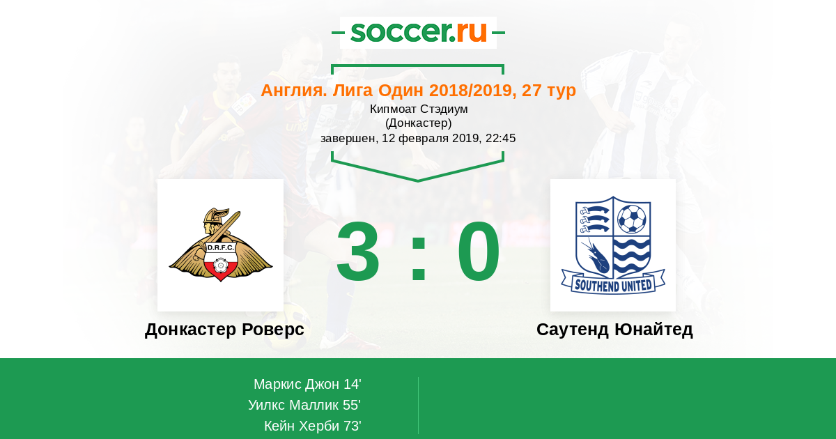Протокол матча Донкастер Роверс против Саутенд Юнайтед