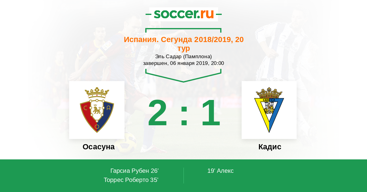 Протокол матча Осасуна против Кадис