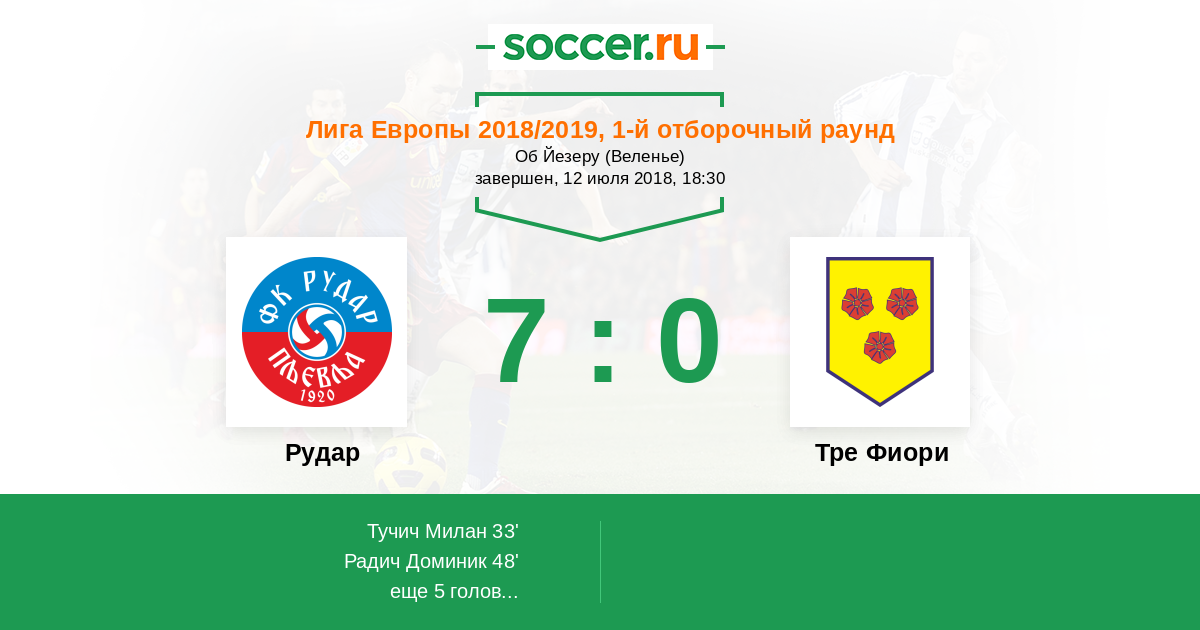 Протокол матча Рудар против Тре Фиори